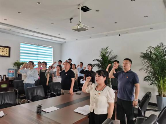 活動開始,在鮮紅的黨旗下,集團黨總支書記趙集睿同志帶領全體黨員,高舉右手莊嚴宣誓:“我志愿加入中國共產(chǎn)黨,擁護黨的綱領,遵守黨的章程......”。通過重溫入黨誓詞,全體黨員表示,再一次加深了作為一名共產(chǎn)黨員的使命感和責任感,要更加堅定牢記自己的初心使命,時刻以黨員的標準嚴格要求自己,堅定理想信念,以實際行動踐行對黨的莊嚴承諾。